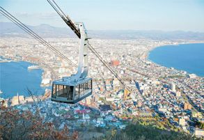 展望台からは、函館山や津軽海峡、横津連峰、特別史跡五稜郭の大地に輝く星形の眺望を観ることができます。